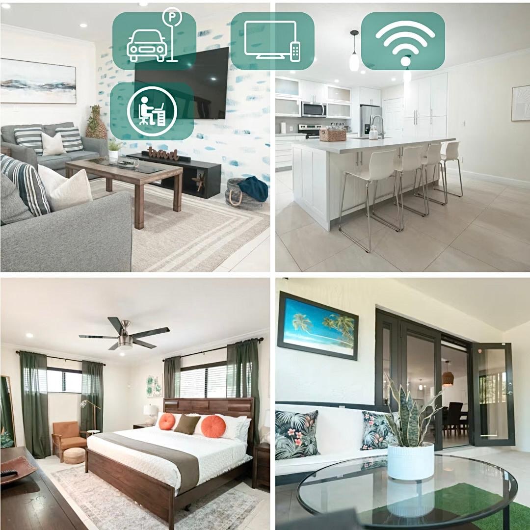 Գեղեցիկ տարածք Մայամիի կենտրոնին և Մայամի Բիչին մոտ ։ Այս բնակարանն ունի իր առանձին բակը ՝ դրսում ճաշելու և բարերի խոհանոցից օգտվելու համար, որը ներառում է ՝ սառնարան, միկրոալիքային վառարան, սառույց պատրաստող սարք, ամանալվաց մեքենա, Keurig սրճեփ և մեկ կաթսա: Կենտրոնական օդորակիչ: Լվացքի մեքենա/չորանոց և երկու հեռուստացույց: Անվճար Wi - Fi/ինտերնետ, մեկ կայանատեղ և ընդհանուր լողավազանի օգտագործում ։ Բնակարանը և լողավազանը երկուսն էլ պրոֆեսիոնալ մաքրված են 🧼 Հիանալի մնալու տեղ Մայամիում ՝ ամեն ինչին մոտ ։