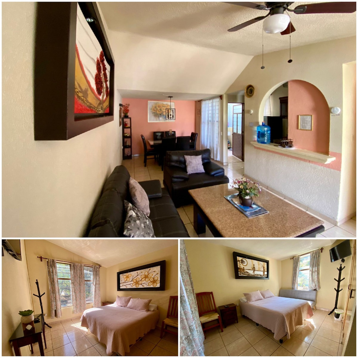 Unwind in this stylish and spacious home located in a peaceful area of Chapala. Designed for comfort and convenience, it features cozy interiors, high-speed Wi-Fi, and easy access to cafés, shops, and local attractions. Ideal for families or small groups seeking a clean, relaxing space to enjoy and explore the beauty of Chapala. 7 min walk to the Malecón and 12 min walk to the Plaza de Chapala. Great Location!
