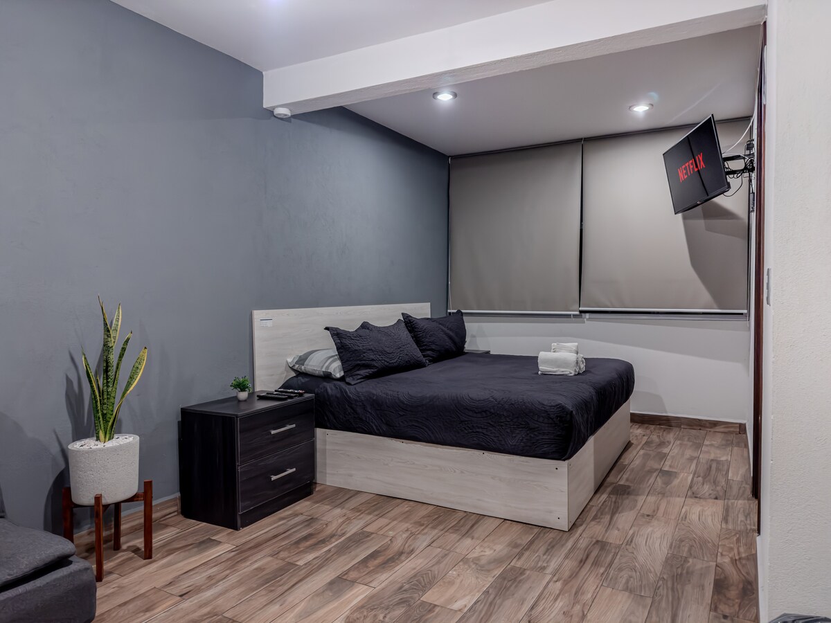 Շքեղ լոֆթ հենց Մորելիայի պատմական կենտրոնում ։ Բարի գալուստ «Կասա Նատալյա» Եկեք և վայելեք այս հիանալի շքեղ լոֆթը ՝ բոլոր հարմարություններով, քնեք ինչպես ձեր թագավորական չափի հիշողության փրփուր մահճակալի բներում, խոհանոցը ձեզ սպասում է անհրաժեշտ ամեն ինչով, անձրևային ցնցուղարանում միշտ կա տաք ջուր, իսկ հեռուստացույցն ունի կաբելային և Netflix, անհրաժեշտության դեպքում կարող եք նաև տնային գրասենյակով զբաղվել Wi - Fi 6 - ով: Այս ամենը ՝ Մայր տաճարից ընդամենը մի քանի թաղամաս հեռավորության վրա գտնվող Մորելիայի կախարդական պատմական կենտրոնում ։