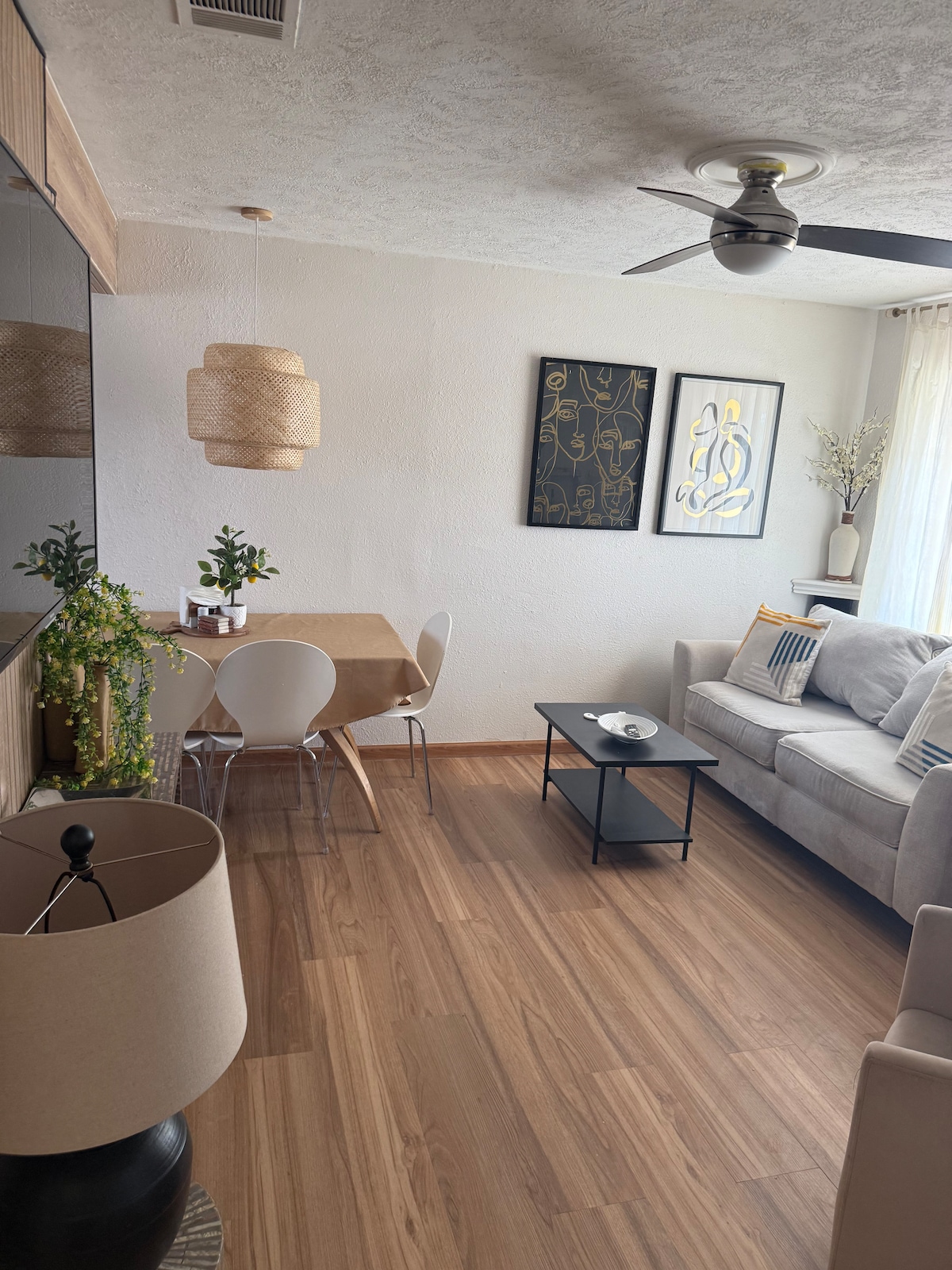 Կենտրոնում գտնվում է տարբեր ռեստորանների և գնումների մոտ, բոլորը կարճ հեռավորության վրա: Ընդարձակ 1BR 1 լոգասենյակ ՝ խոհանոցի/ընթրիքի/հյուրասենյակի համար բաց հատակագծով ։ Մեր հարկաբաժինն առաջարկում է անվճար Wi - Fi, առանց բանալիների մուտք և ամբողջական խոհանոց ։ Թարմ սպիտակեղեն, սրբիչներ, արդուկ/արդուկի սեղան և լվացքի մեքենա/չորանոց կարելի է գտնել ընդարձակ պահարանում ։ Ննջասենյակում կա 150 -179 սմ մահճակալ, գրասեղան, և յուրաքանչյուր սենյակ ունի Amazon Fire Smart TV w/ հեռակառավարման վահանակ ՝ մի քանի հոսքային հավելվածներ մուտք գործելու համար Փոքրիկ պատիոն գտնվում է բնակելի տարածքից դուրս ՝ նստատեղերով և տնային կենդանիների համար նախատեսված տարածքով ։