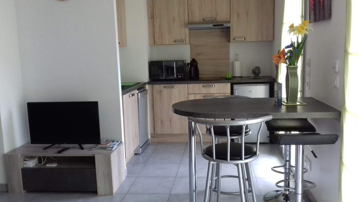 Վերանորոգված բնակարան, որը գտնվում է հին Թանինգես քաղաքի սրտում գտնվող փոքրիկ ընտանեկան բնակարանում ։ Այն ներառում է հյուրասենյակ ՝ բազմոցով և կահավորված խոհանոցով, ննջասենյակով, ցնցուղի սենյակով և առանձին սանհանգույցով ։ Դուք կվայելեք Ֆորոնի, Château Parc du Château - ի և Pic du Marcelly - ի հիանալի տեսարանը: Մոտակայքում խանութներ և ծառայություններ ։ Հիանալի է բնության և ժառանգության միջև հարմարավետ հանգստի համար ։