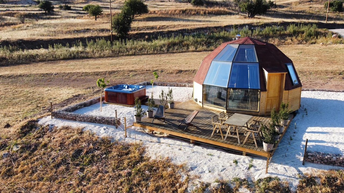 Find your home away from home in our all wood dome hand built in nature in a tranquil, peaceful setting. An oasis of serenity amidst the city! Located 5km from Peyeia center, 8km from Coral Bay and 17km from Pafos in the tiny village of Akoursos with a popullation of just 35. An ideal location to relax and enjoy nature away from the city but also 5min away from amenities and the beautiful Cyprus beaches . Enjoy the lovely setting of this romantic spot in nature and wake up to birds singing.