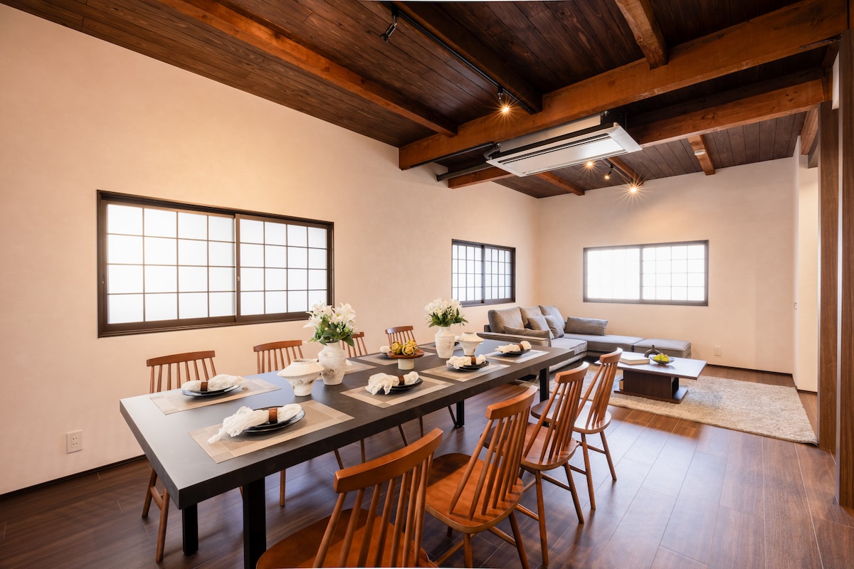 JR Օկայամա կայարանի արևմտյան ելքից 10 րոպե քայլելու հեռավորության վրա, պրոյեկտորով և Nintendo-ով | Ճաշասենյակ | Չորանոցով
