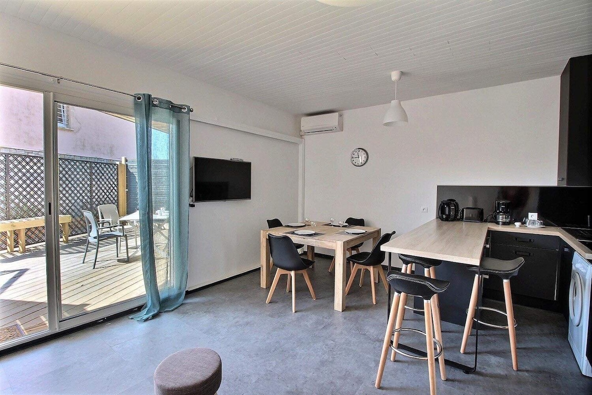 Studio homologué meublé du tourisme deux étoiles 25 m2, à 200m des plages dans quartier très animé proche de tous commerces et de la plages. Juillet et aout location à la semaine seulement, du samedi au samedi. Produits de ménage fournis. C’est un couchage en 140/200. Pas de wifi Petite terrasse privative Arrivée autonome avec coffre sécurisé Code donné le jour de l’arrivée.