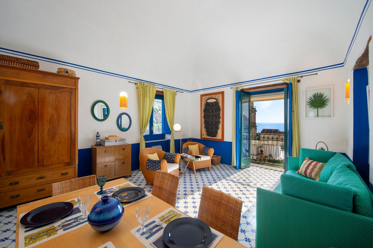 Positano լուսավոր բնակարան պատշգամբով հիանալի տեսարանով