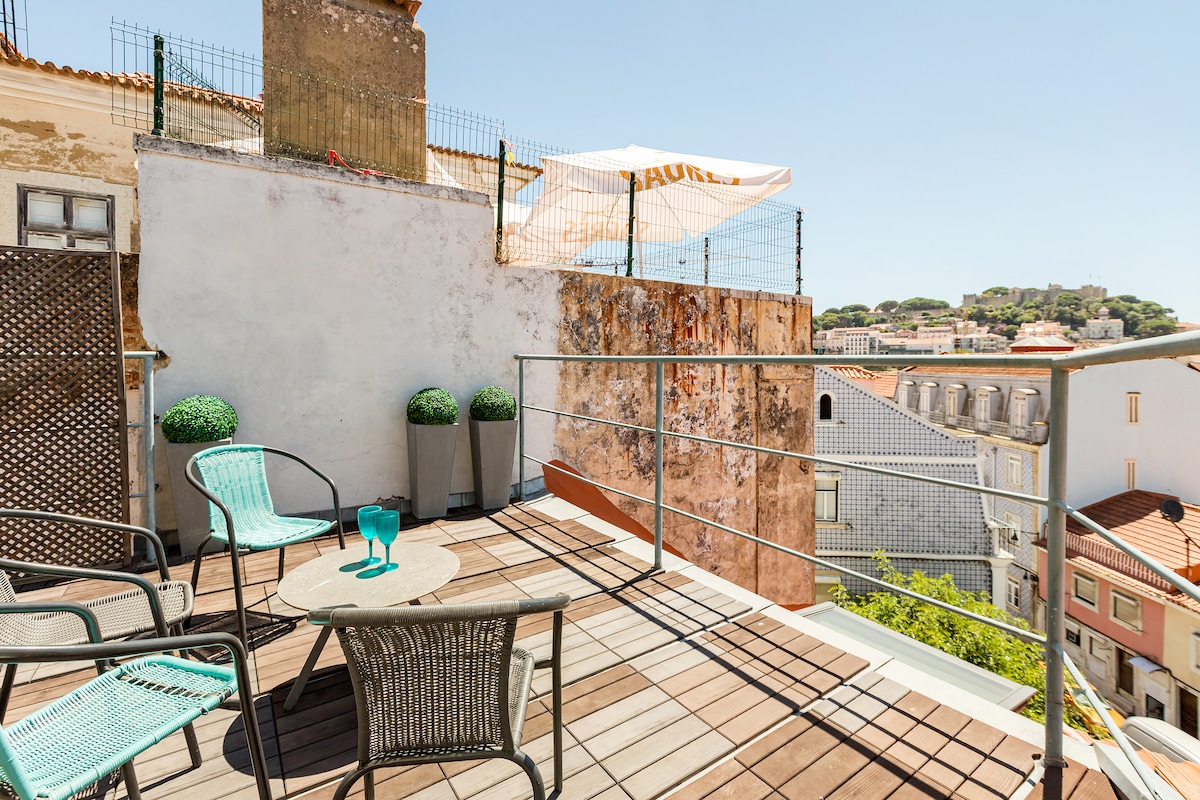 Փոքր և կենտրոնական բնակարան ՝ տեղակայված Լիսաբոնի ամենաբարձր բլուրներից մեկում, որտեղից հիասքանչ տեսարան է բացվում: Կատարյալ վայր է մի քանի հոգու համար, ովքեր ցանկանում են այցելել Լիսաբոն քաղաքի ավանդական թաղամասերից մեկը: Հիմնական տեսարժան վայրերի մեծ մասից, ինչպիսիք են դղյակը, լու շուկան կամ Լիսաբոնի կենտրոնը, հինգ րոպե քայլելով ՝ այս բնակարանը տեղադրված է հանգիստ բնակելի թաղամասում, ինչը հնարավոր է դարձնում խուսափել կենտրոնական քաղաքի ամենօրյա շտապողականությունից: Բնակարանը վերջերս վերանորոգվել է և լիովին հագեցած է մեծ հարմարավետությամբ ։