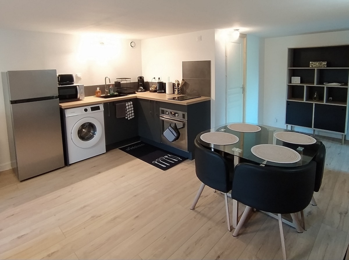 Բարի գալուստ այս գեղեցիկ 70 քմ բնակարան, ջերմ, իդեալական հանգստի կամ աշխատանքային այցի համար։ առաջին հարկում՝ մեծ հյուրասենյակ՝ դեպի պատշգամբ բացվող տեսարանով, լիովին կահավորված խոհանոց, ճաշասենյակ, հյուրասենյակ՝ բազմոցով։ Վերին հարկում՝ հարկաբաժնում, կա մեծ ննջասենյակ՝ 160 x 200 չափերով մահճակալով, և լոգասենյակ։ Դուք մայրուղուց և առևտրի թաղամասից 3 րոպե հեռու եք, մինչդեռ վայելում եք գյուղական վայրի հանգստությունը։ Ապահով կայանատեղ բակում (մեքենաներ, մոտոցիկլետներ, հեծանիվներ)