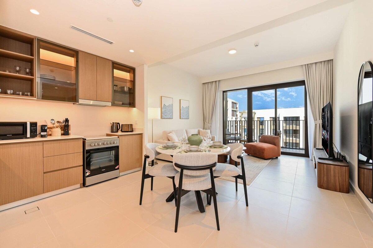 Վայելեք նորաոճ փորձառություն կենտրոնում գտնվող այս վայրում ։ Հանգստացեք և լիցքաթափվեք այս խաղաղ և նրբագեղ կացարանում ։ Տարածքը լի է առանձնահատկություններով և հնարավորություն է տալիս մնալու կանաչ համայնքում ՝ Բուրջ Խալիֆայի տեսարանով , 1 ննջասենյակով գեղեցիկ բնակարան ՝ բոլոր հարմարություններով ։ Վայելեք անխռով փարթամ կանաչ լանդշաֆտը Կայքը ☑️10 րոպե մինչև Բուրջ Խալիֆա և Դուբայ Մոլ և ՇԶ ՌՈՈՒԴ ☑️14 րոպե մինչև Դուբայի օդանավակայաններ ☑️10 րոպե մինչև Ռաս Ալ Խորի վայրի բնության արգելավայր ☑️18 րոպե մինչև Փալմ Ջումեյրա
