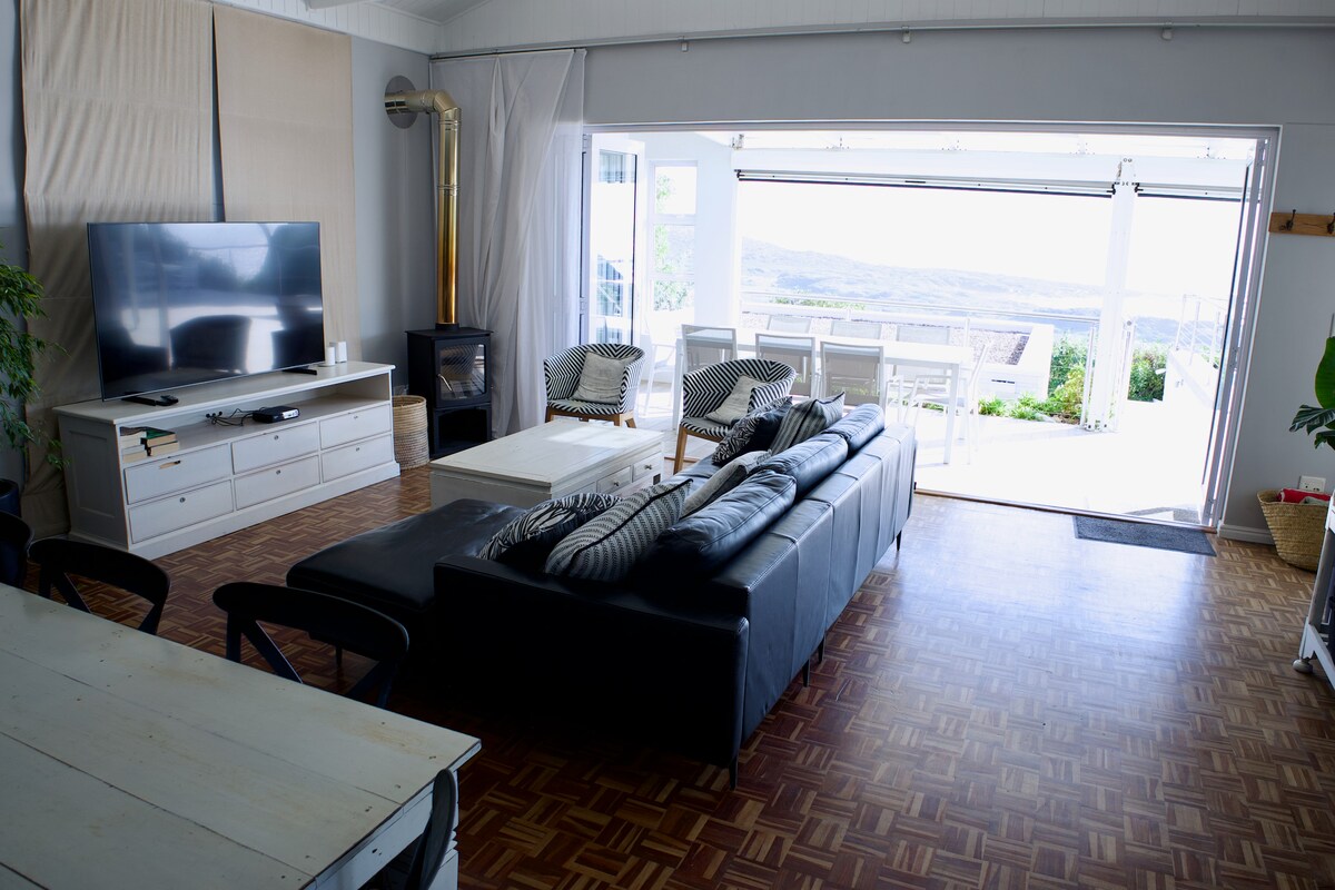 Stay here and enjoy stunning sea views, peaceful nature and a refined yet homely interior. Watch glowing sunsets or passing whales and dolphins and the romantic mist over the cliffs with the sound of waves as your constant backdrop. Relax by the fireplace in the spacious double‑storey lounge, cook in the fully equipped open‑plan kitchen and work with fast fibre and a “ready‑to‑plug‑in” office setup. Please do read the important info about steep stairs to the house and additional points below.