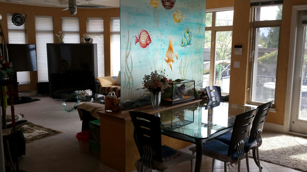 Մենք ողջունում ենք ձեզ մեր նոր վերանորոգված հյուրերի առանձնաբաժնում Ռիչմոնդում, ընդամենը 5 -10 րոպե ՝ YVR - ից uber/lyft - ի միջոցով: Դուք կկարողանաք առանձնանալ ձեր սիրելիի հետ մեզ մոտ մնալու ընթացքում, քանի որ այս առանձնաբաժինը մասնավոր է ՝ առանց ընդհանուր տարածքների: Ձեր հարմարավետության համար տրամադրում ենք բոլոր հարմարությունները, օրինակ ՝ սրբիչները, օճառները, շամպունները, սուրճը և թեյը ։ Սուզվեք անվճար ժամանցի մեջ մեր Samsung Smart հեռուստացույցով: 5 րոպե ավտոբուսով կամ 10 րոպե ոտքով մինչև Skytrain կայարանը կապում է ձեզ Վանկուվերի մնացած մասի հետ (20 րոպե մինչև կենտրոն)