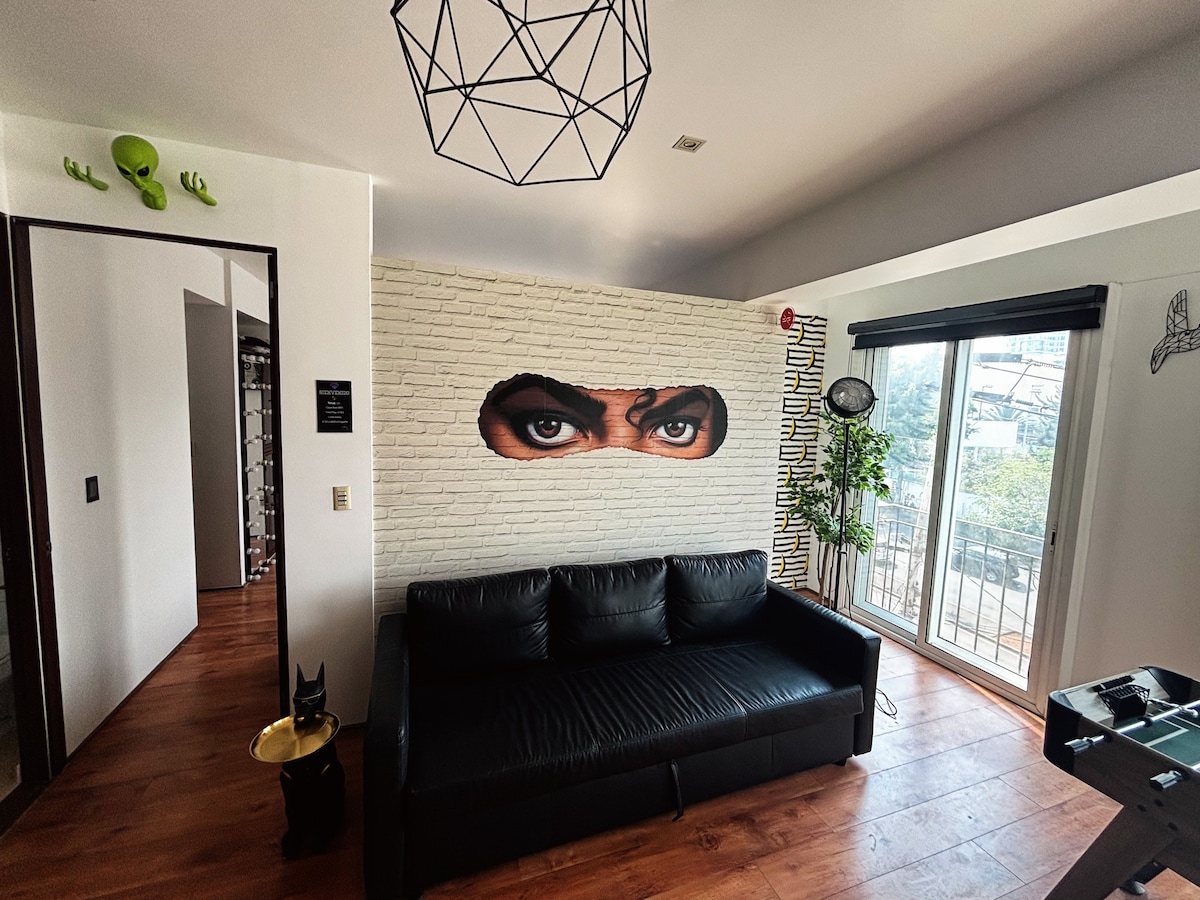 This one of a kind and cozy pent-house is located inside one of the most emblematic developments built in La Condesa neighborhood. Its architecture is a contemporary version of Art Deco. A style that defines La Condesa. It is located in a beautiful, tree-lined area. The atmosphere is very family-oriented, with young and vibrant people. The surroundings invite us to step out, walk, relax and discover new experiences.