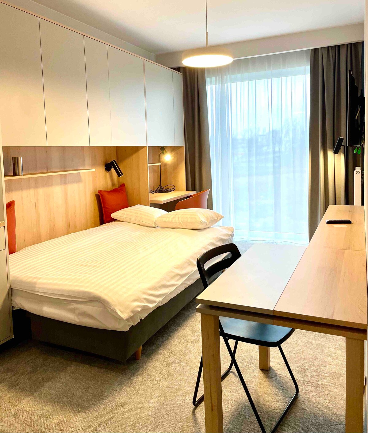 Nordic-style studio apartment, free gym access