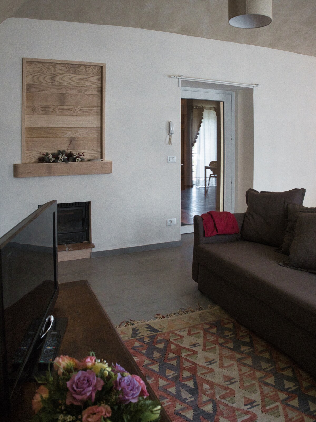 With a breathtaking view of the Langhe, the suite Piazza d'Assi is a uniquely designed apartment on the top floor of Palazzo d'Assi, a medieval building in the historic center of Monforte d'Alba. For couples, families, or friends, Piazza d'Assi is a spacious apartment with a living kitchen, a romantic double bedroom, a double bedroom plus a single bed, and a bathroom with a rustic and refined design. Covered terrace. Restaurants, bars, leisure activities within walking distance.
