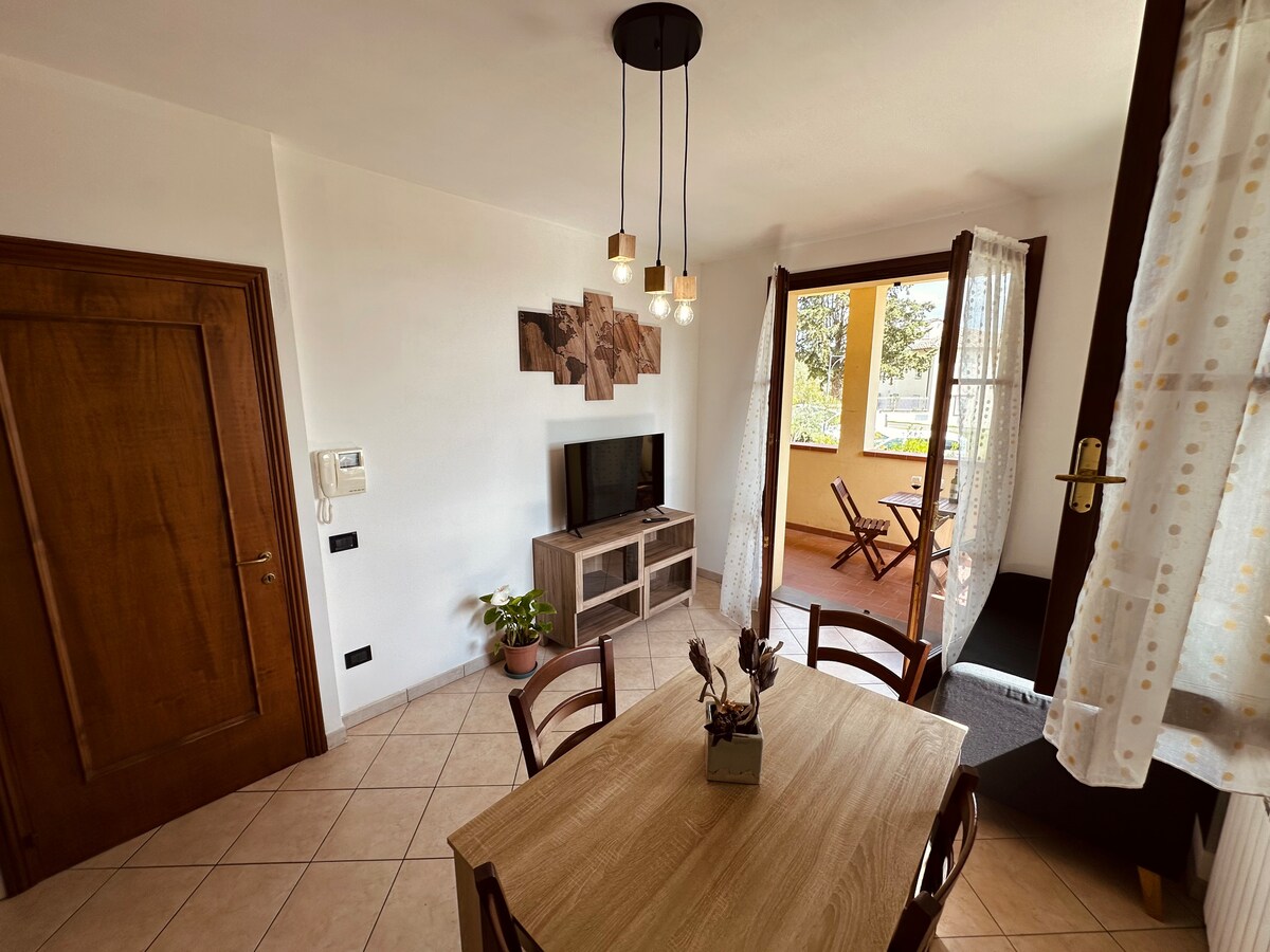 Piccolo e confortevole appartamento per 2 persone arredato in stile toscano e con travi a vista,immerso tra le dolci colline della campagna toscana. A disposizione degli ospiti spazio esterno con tavolo,piscina condivisa,forno a legna e barbecue,piccola lavanderia,wi-fi. L'appartamento è stato ricavato da una graziosa casa colonica in pietra del 1800 recentemente ristrutturata secondo la tradizione toscana e suddivisa in tre comodi appartamenti.