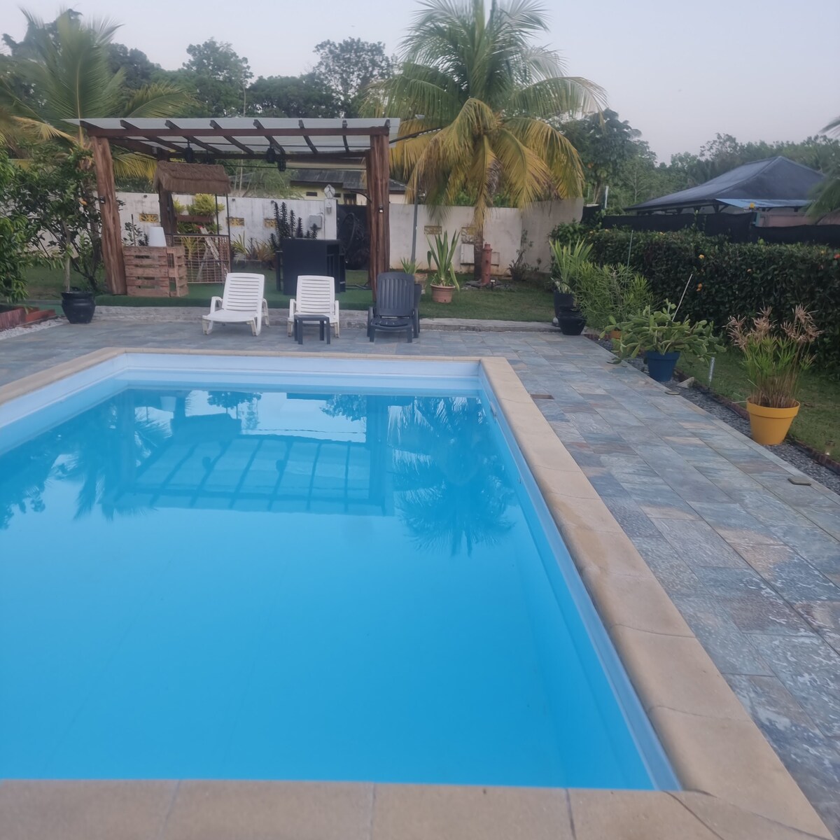 Logement idéal pour tous vos séjours: de loisir ou professionnel ! Il est situé à proximité de toutes les commodités nécessaires ! Cette villa offre : - Une chambre avec lit double, climatisation, télévision, penderie, salle de bain - Salon-salle à manger avec canapé-lit, climatisation, télévision - Cuisine équipée avec machine à café, bouilloire, grille pain, four, réfrigérateur, micro-ondes … et lave linge - Piscine privée avec mobilier - Cuisine extérieure avec barbecue - Parking privé