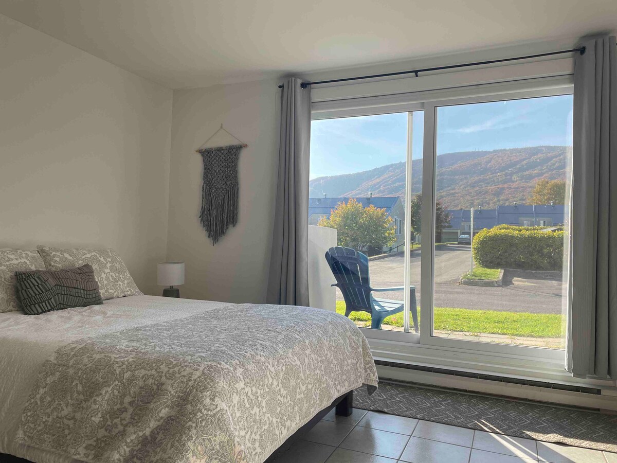 Loft avec vue sur la montagne pouvant acceuillir 2 à 3 voyageurs (divan-lit pour les enfants). Le loft vous offre un vaste espace à l'entrée pour mettre vos vélos, skis ou planches à neige. Profitez du foyer électrique et d'une bonne fondue en après-ski ! (équipement fourni). Le loft possède une cuisine complète pour faciliter les repas. Sur le site, profitez des espaces communs (piscine creusée, espace pour barbecue extérieur, terrain de tennis). Un stationnemen gratuit CITQ : 312388