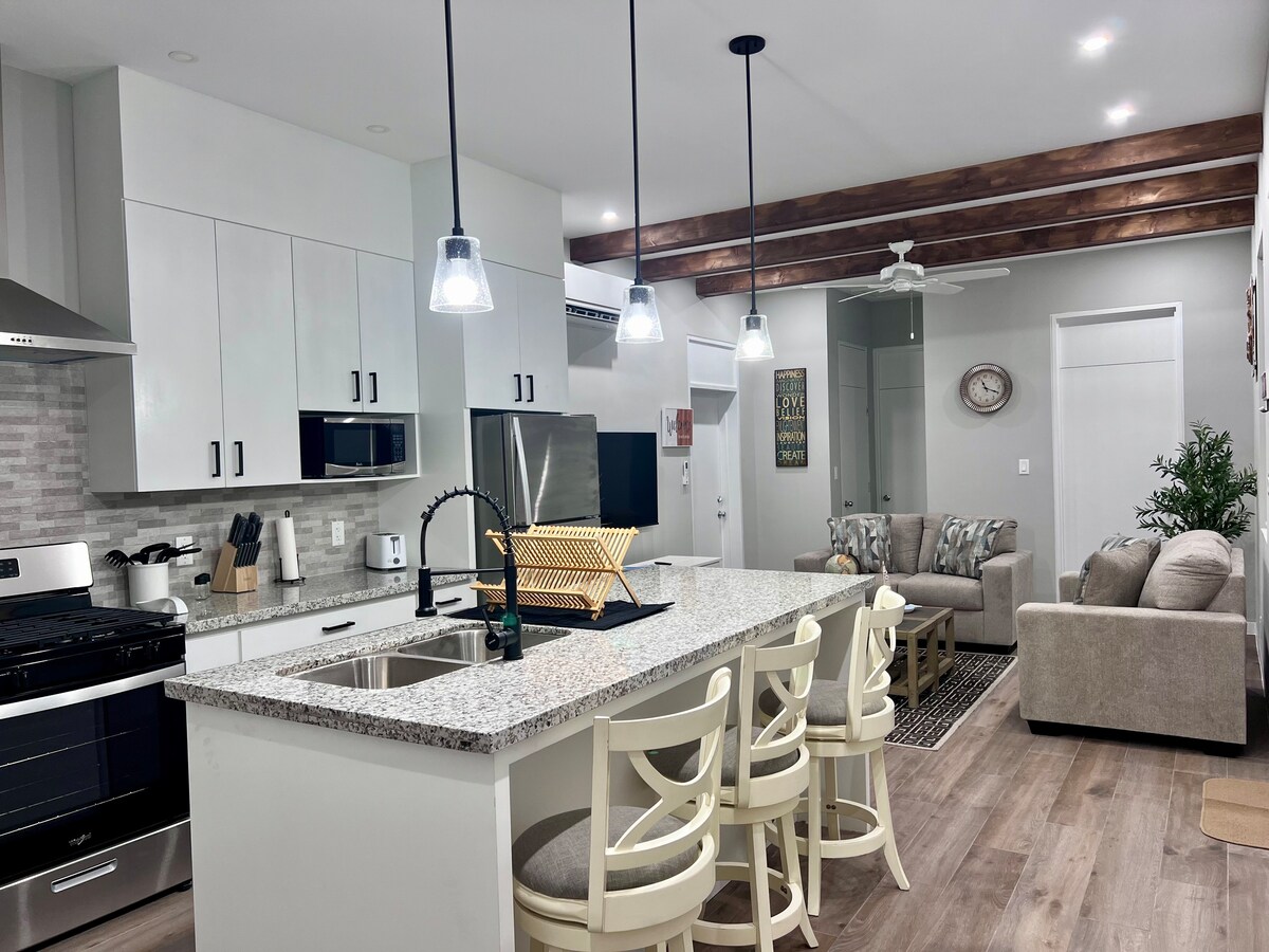 Բացահայտեք կատարյալ հանգիստ հարմարավետ վայրում: Նոր Փրովիդենսի կենտրոնում գտնվող մեր հմայիչ ավանդական տունն առաջարկում է մեկուսի հանգիստ ՝ առանց բանալիների մուտքով ։ 1 ննջասենյակով ՝ օրթոպեդիկ մահճակալով, ամբողջական լոգարանով և կահավորված խոհանոցով ՝ այն ձեր իդեալական տարածքն է հանգստի, ռոմանտիկ հանգստի կամ գործնական ուղևորության համար ։ Մենք ընդամենը 7 րոպե քայլելու ենք հասարակական տրանսպորտով, սուպերմարկետից 3 -5 րոպե հեռավորության վրա և 8 րոպե մեքենայով դեպի մոտակա լողափ ։ Զգացեք հարմարավետության և հարմարավետության պարզությունը