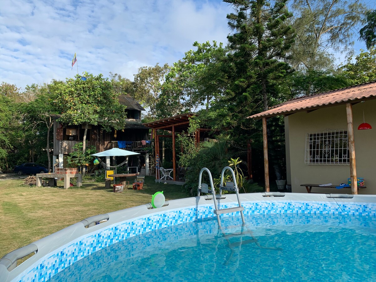 ¡Estrena Suite Frente al mar! Cómoda y segura cerca de todas las atracciones de Montañita. Justo al pie de la zona con olas para surfear. Suite tranquila, sin ruido y con sonidos de la naturaleza. A 8 minutos del pueblo de Montañita caminando. Guía personalizada sobre lo que quieran saber de la Playa. Suite libre de insectos. Preocupados por el confort de nuestros huéspedes para hacer de sus vacaciones una experiencia única. Cuarto y baño grande entran dos parejas cómodamente con piscina.