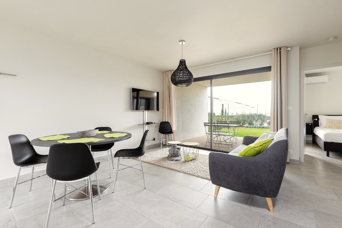 → Հմայքը և համոզմունքը անմոռանալի հանգստի համար :-) Ժամանակակից → հարմարավետություն (A/C, շատ բարձր արագությամբ Wi - Fi, սպասք լվացող մեքենա, լվացքի մեքենա, չորանոց և այլն) → 3 ննջասենյակ ՝ երկտեղանի մահճակալներով (160 սմ x 200 սմ) 100% կահավորված բաց պլանի→ խոհանոց → 2 բազմոց և մեծ հեռուստացույց → Shaded կտուր + գազի խորոված → 5 րոպե S NCF երկաթուղային կայարան/ Old Town Montélimar → Անվճար կայանատեղի այգում կամ փողոցում → Իդեալական է ընտանիքների, զույգերի և մասնագետների համար ՕՐԱՑՈՒՅՑԸ ՄԻՆՉԵՒ ՕՐՍ = ԱԿՆԹԱՐԹԱՅԻՆ ԱՄՐԱԳՐՈՒՄ ՆՈՒՅՆԻՍԿ ՎԵՐՋԻՆ ՊԱՀԻՆ:
