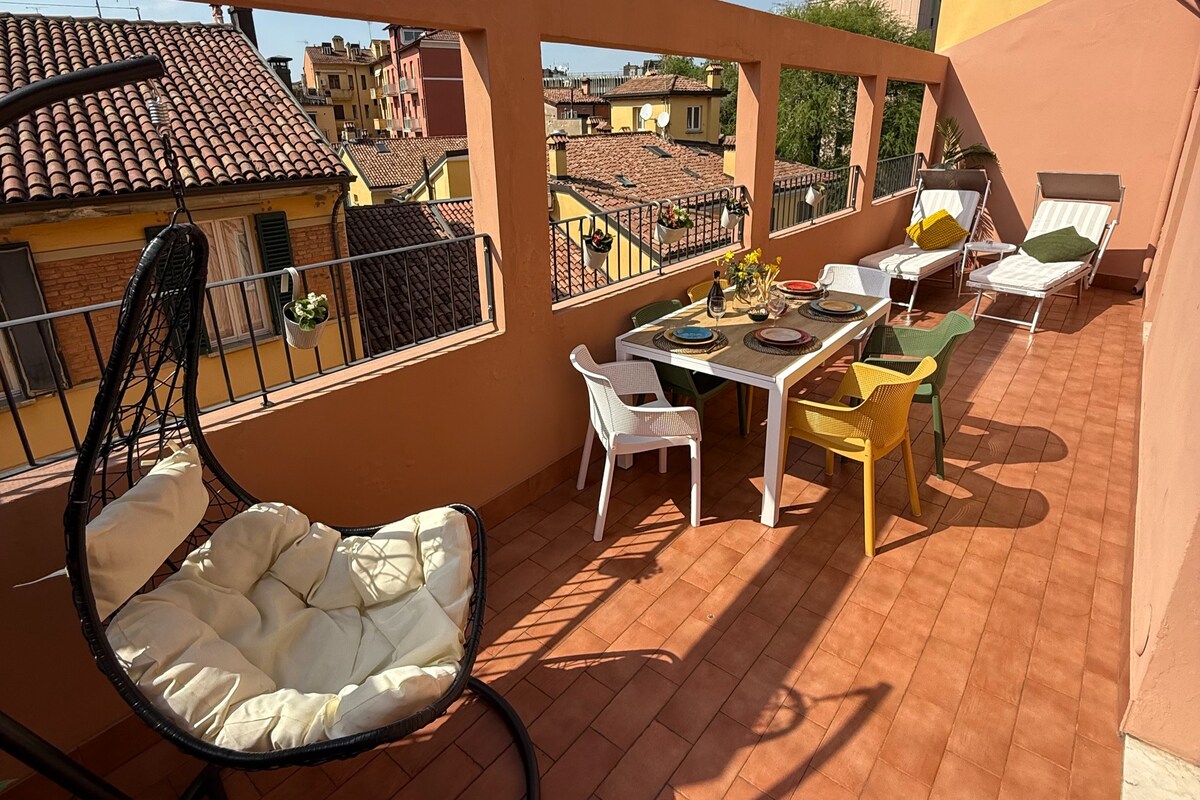 Էլեգանտ բնակարան ՝ մեծ կտուրով, որը գտնվում է Բոլոնիայի հնագույն սրտում ։ Իտալիայի ամենաաշխույժ և հետաքրքրաշարժ քաղաքներից մեկի կենսունակությունն ու մշակույթը լիովին գնահատելու համար ՝ լինի դա կարճ, թե երկար ժամանակ հանգստի, հանգստի կամ աշխատանքի համար: --------------- Էլեգանտ բնակարան ՝ հիանալի տեռասով Բոլոնիայի կենտրոնում: Առավելագույն մակարդակի վրա զգալու համար իսկական իտալական ոճը մշակույթի և Իտալիայի ամենահայտնի քաղաքներից մեկում ՝ ինչպես երկար, այնպես էլ կարճ ժամանակահատվածում , հանգստի կամ բիզնեսի համար: