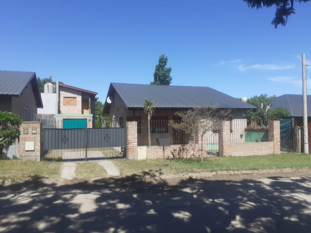 Relajate con toda la familia en este tranquilo alojamiento. Tenemos Direc Tv. Internet. En la habitacion principal hay aire acondicionado. Amamos a las mascotas, son siempre bienvenidas. Tenemos una hermosa parrilla para disfrutar ricos asados al aire libre, en un hermoso jardin. Estamos en una zona muy tranquila a 9 cuadras de la playa y a 7 del centro. Tenemos lavarropas, horno electrico, cocina, heladera. El baño tiene bidet. Se pueden guardar hasta dos vehiculos.