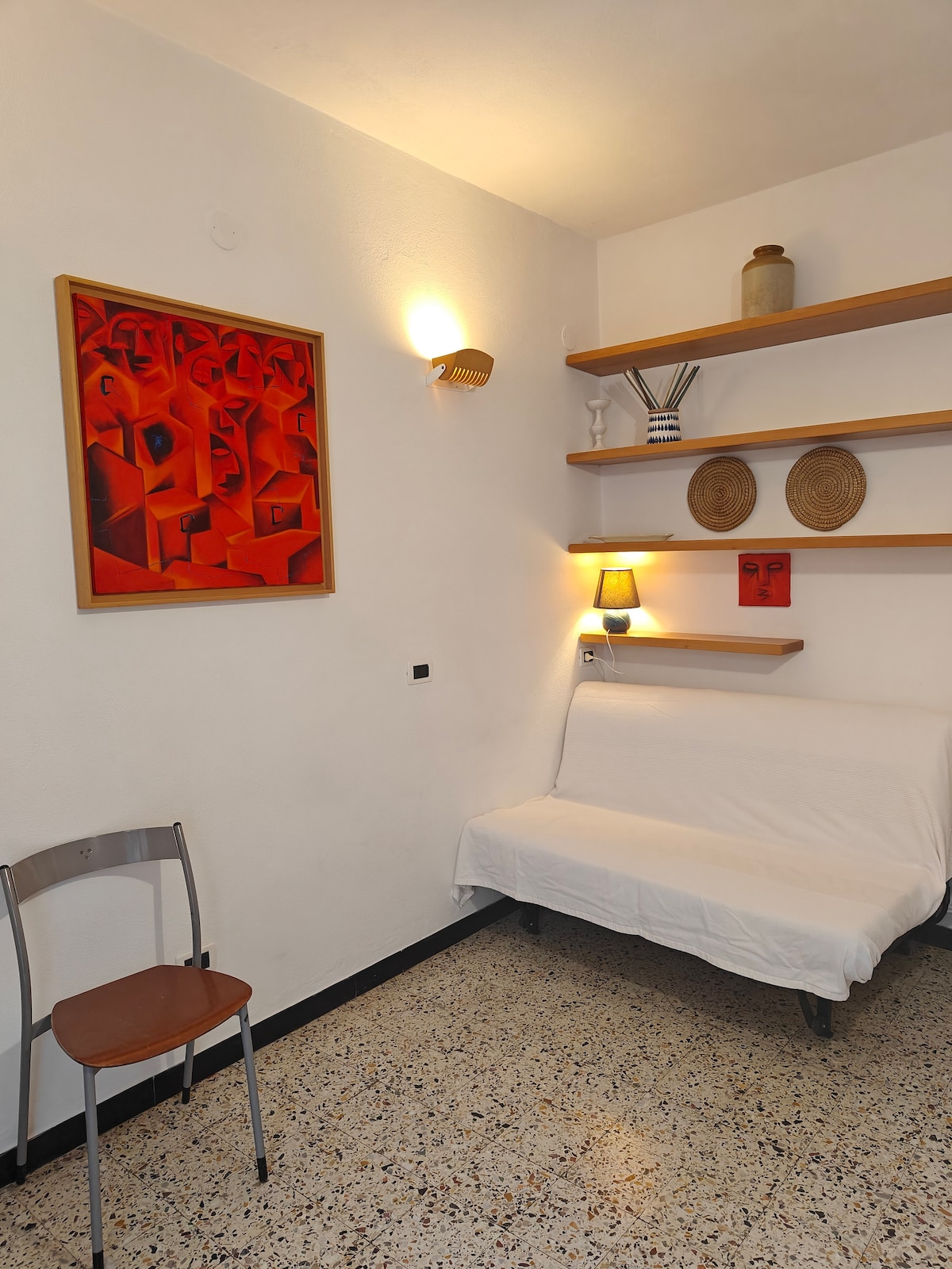 Երկու սենյականոց գեղեցիկ բնակարան (cod.CIN: IT011019C23V9YNOG2) Մոնտերոսսոյի պատմական կենտրոնում, որը հասանելի է տիպիկ լիգուրիական սանդուղքով գյուղի հանգիստ տարածքում ՝ լողափերից, կայարանից (500 մ) և գյուղի կենտրոնից մի քանի քայլ հեռավորության վրա ։ Մեկ ննջասենյակով բնակարանը բաղկացած է ննջասենյակից և մեծ խոհանոցից, որին կից կա փոքրիկ լոգասենյակ, իսկ ցնցուղի սենյակը ընդարձակ է և արտաքին ։ Ննջասենյակից կարող եք մուտք գործել դեպի գյուղի տեսարանով կտուր ։ Հասանելի են Wi - Fi,հեռուստացույց և օդորակիչ ։