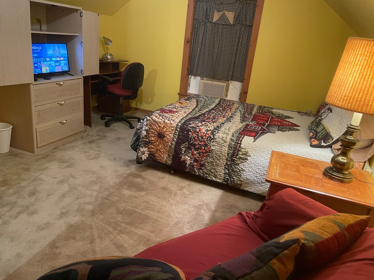 Accommodations are two private upstairs king size bedrooms with queen beds with a common area between them with a smart tv, wifi, small refrigerator, Keurig, Coffee maker, air conditioner, water cooler & microwave located on a hill in the beautiful countryside of Sharon Springs.