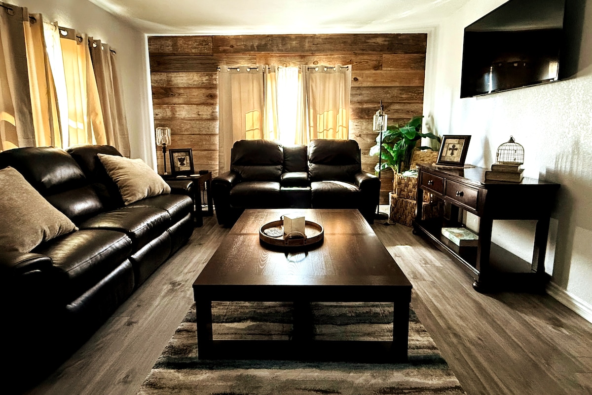 Bring your family to The Wildflower Ranch for a memorable experience! Every inch of this 3400 sqft resort-style log cabin is gorgeous & perfect for your getaway. Capable of sleeping large groups up to 20 people, with a spacious open concept living area. The living area flows perfectly to the back porch where there is a gas grill, and a firepit just waiting for s'mores and stories. Don't just book accommodations, come for a once-in-a-lifetime reconnection experience! Large Hot tub & Generator!!