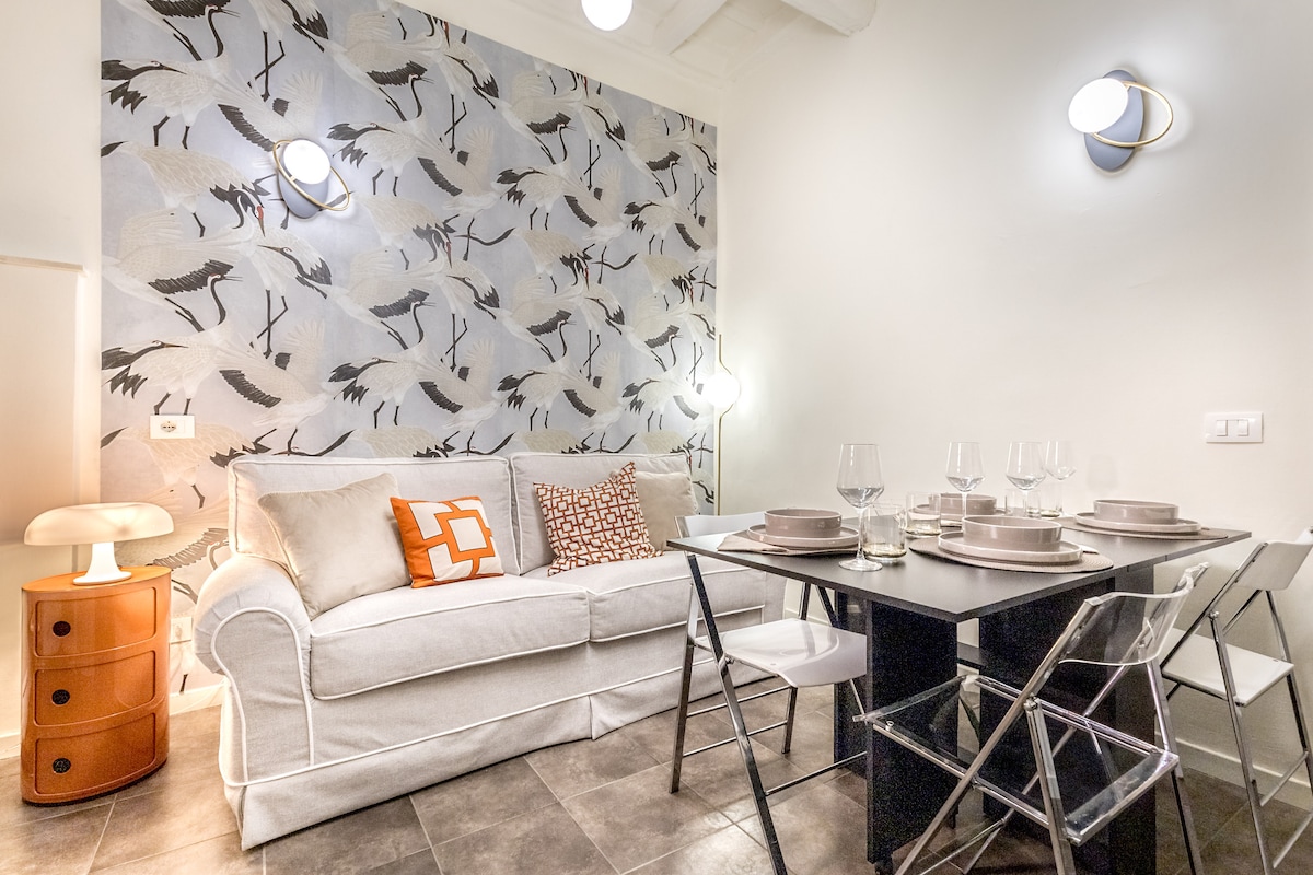 Հիասքանչ վերանորոգված, նորաձև բնակարան Հռոմի պատմական կենտրոնի սրտում՝ Կամպո դե Ֆիորիից և Պիացցա Նավոնայից ընդամենը մի քանի քայլ հեռավորության վրա Բնակարանում կա ընդարձակ հյուրասենյակ՝ հարմարավետ երկտեղանի բազմոցով և բաց հատակագծով խոհանոցով Շարունակելով կգտնեք բոլոր հարմարություններով երկտեղանի ննջասենյակ և լոգասենյակ՝ մեծ, ժամանակակից ցնցուղարանով Բնակարանում կա օդորակիչ, Wi-Fi ինտերնետ, հեռուստացույցներ, սպասք լվացող մեքենա, լվացքի մեքենա-չորանոց և լիովին կահավորված խոհանոց։