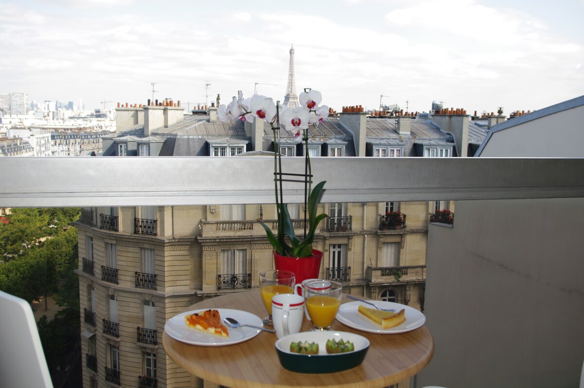 Charming studio view of the Eiffel Tower