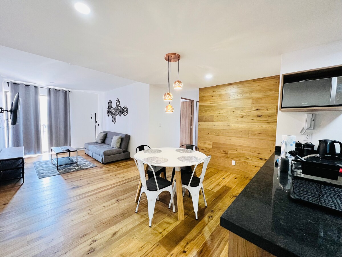 Վայելեք նորաոճ հանգիստ այս գեղեցիկ բնակարանում ։ Շենքը նոր է, ունի վերելակ, 24 ժամյա անվտանգություն և գտնվում է Հեղափոխության հուշարձանից 1 փողոց, որը շատ մոտ է քաղաքի կենտրոնին և Ռեֆորմային: Մի քանի քայլ հեռավորության վրա կգտնեք ռեստորաններ, սրճարաններ, տեղական հացաբուլկեղենի խանութներ և խանութներ: Բնակարանը նախագծված է մեր հյուրերի համար, ունի երկտեղանի մահճակալ, հյուրասենյակ, լոգասենյակ, լվացքի մեքենա, չորանոց և ամբողջական խոհանոց ։