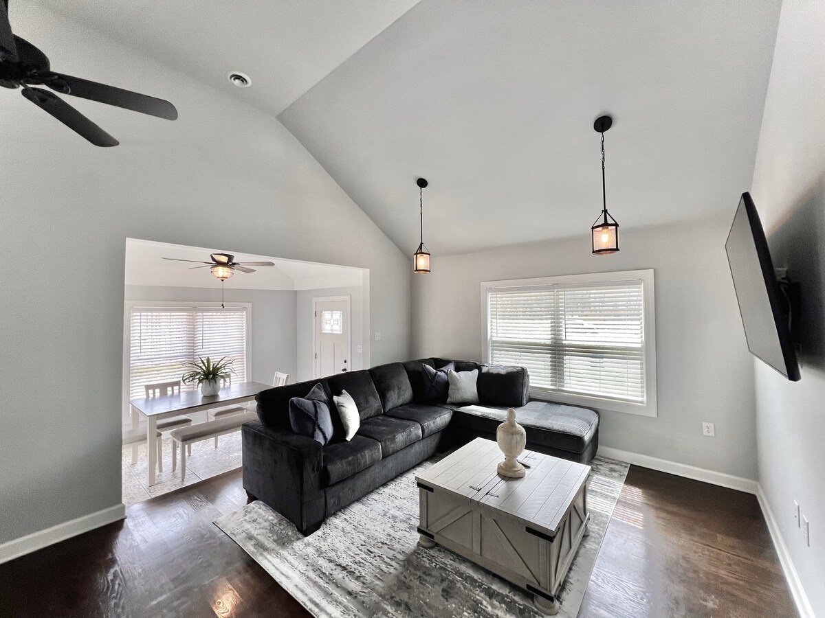 This modern 3-bedroom, 2.5-bath home is your serene escape for relaxation and connection! Curl up in the cozy reading nook, enjoy open living areas perfect for family time, or cook up a meal in the fully stocked kitchen. Step outside to a tranquil backyard with a firepit and grill for starry evening gatherings. Just a short walk to Lake Norman, Hideaway at Huntington blends calm, comfort, and charm for a truly memorable stay.