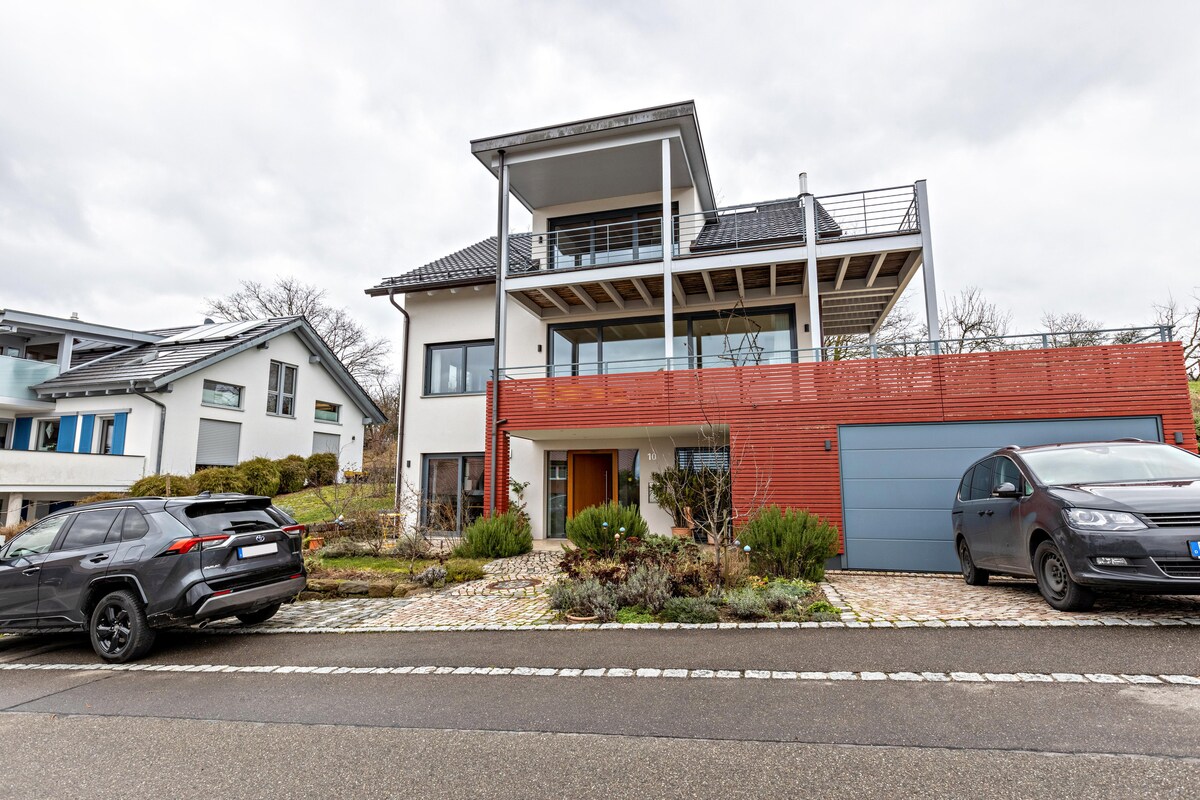 Այս յուրահատուկ տունն ունի իր ոճը: Դուք կարող եք վայելել հանգստությունը, դեպի «Hohentwiel» շատ կանաչապատ տարածքների տեսարան, որը լավագույնս կարելի է դիտել մայրամուտի ժամանակ: Կարող եք օրը սկսել բատուտի վրա գտնվող պարտեզում կամ նախաճաշել, զբոսնել դեպի լիճ կամ հեծանիվներով ուսումնասիրել «Հորի» թերակղզին: Տեռասում օրն ավարտեք մայրամուտով և լիցքաթափվեք ։ Միգուցե ձեր շան հետ...