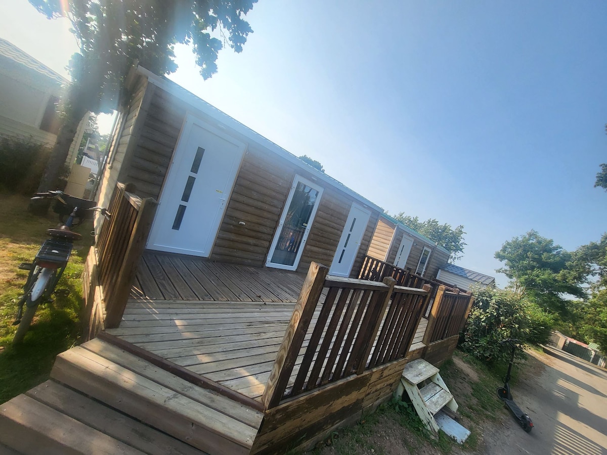 6 հոգանոց քոթեջներ ՝ ծածկված կտուրով ։ 1 գլխավոր ննջասենյակ 1 մահճակալ 140×190 ։ 1 երեխայի սենյակ 2 մահճակալ 80x190: 1 տնակային ննջասենյակ ՝ երկու 80x190 երկհարկանի մահճակալով ։ Խոհանոցը բաց է դեպի կտուր (շատ պահեստ և մեծ եռանկյունաձև կաթսա )։ Յուրաքանչյուր շարժական տանը տրամադրվում են վերմակներ և բարձեր (տեղում սավաններ վարձակալելու հնարավորություն ՝ մեկ սավան ՝ 9 € երկտեղանի սավան ՝ 12 € )։