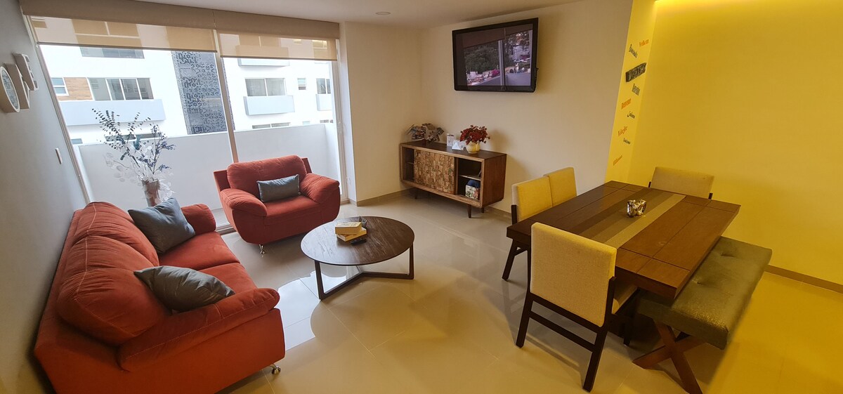Վայելեք Մորելիան պատմական կենտրոնից ընդամենը մի քանի րոպե հեռավորության վրա: Նոր բնակարան ՝ անմոռանալի հանգիստ անցկացնելու համար անհրաժեշտ ամեն ինչով ։ Շքեղ պահեստ ՝ հիանալի ավարտներով և դիզայնով կահույքով, որը կօգնի առավելագույնս օգտվել Մորելիայում ձեր այցից ։ Գեղեցիկ տեսարան դեպի Մորելիայի տաճար ։ Այն ունի երեք սենյակ և երեք զուգարան, լիովին կահավորված խոհանոց, լիովին կահավորված խոհանոց, հյուրասենյակ և ճաշասենյակ ։