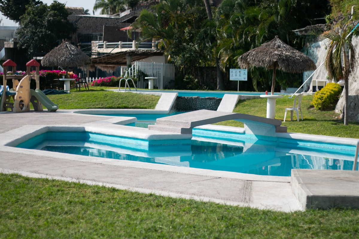 Վայելեք խցանն այս զարմանահրաշ բնակարանում ՝ Wi - Fi - ով, օդորակիչով, մարզասրահով, խաղասրահով և ջեռուցվող լողավազանով (ջերմաստիճանը կախված է եղանակից) Այս տարածքը իդեալական է ընտանիքի և ընկերների հետ հանգիստ վայելելու, աշխատանքից հետո կամ միջոցառումից վերադառնալիս կամ միջոցառումից վերադառնալիս: Բնակարանը գտնվում է շատ կենտրոնական տարածքում ՝ մի քանի միջոցառումների այգիների, հարմարավետ խանութների և ռեստորանների հարևանությամբ, Plaza Cuernavaca - ից ընդամենը 10 րոպե հեռավորության վրա: