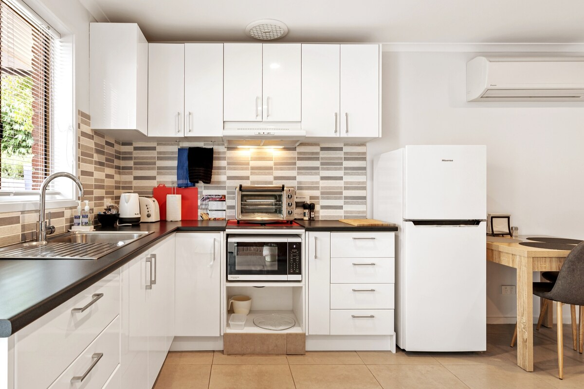 Հանգստացեք, հանգստացեք և հանգստացեք այս հարմարավետ, յուրահատուկ և անխռով հանգստի վայրում ։ Ամբողջական գաղտնիություն ՝ սեփական բակով և փողոցից դուրս կայանատեղիով ։ Կատարյալ է ռոմանտիկ հանգստի համար ՝ ուսումնասիրելու գինեգործարանները, լողափերը, սրճարանները, ռեստորանները, գոլֆը, տաք աղբյուրները և այլն: 4 րոպե մեքենայով (2,1 կմ) մինչև Մորնինգտոնի ցնցող լողափերը և ընդամենը 5 րոպե մեքենայով (2,2 կմ) դեպի Գլխավոր փողոցների խանութներ և սրճարաններ: Accom - 1 ննջասենյակ QS մահճակալ, զուգարան և ցնցուղ, թեյ/սուրճ/տոստեր, սառնարան, խորոված, բացօթյա միջավայր գեղեցիկ պարտեզի մեջ: