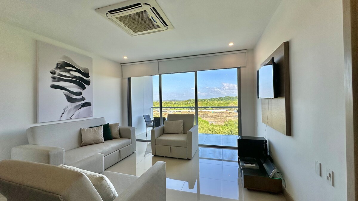 ★ Beautiful Beachfront Apartment ★ located in the Morros Ío condominium, Serena del Mar — one of the most exclusive and modern areas of Cartagena. "Stunning side view of the Caribbean Sea" "Exclusive beachfront resort with magnificent spaces to relax and enjoy" "Professional cleaning and disinfection" → 10 minutes from Rafael Núñez International Airport → 15 minutes from the Historic Walled City → 3 minutes from Las Ramblas Mall → Surrounded by renowned hotels: Meliá, Estelar, and Karibana