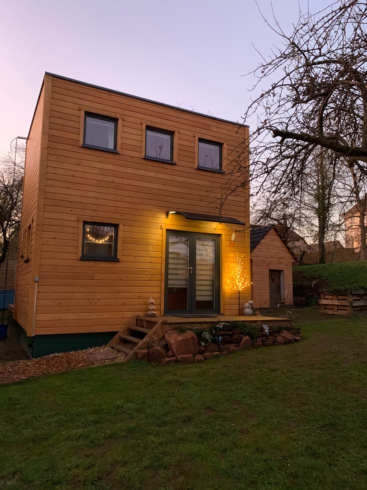 Հանգիստ էկոլոգիական շինություն, որը գտնվում է մեծ մասնավոր պարտեզում և իդեալական է բնության մեջ հանգստի համար։ Անձնական պատշգամբ և առողջարանային հարմարությունների հասանելիություն՝ լողավազան ամռանը և ջակուզի ձմռանը (համատեղ սեփականատերերի հետ)։ Քաղաքի կենտրոնը ոտքով 10 րոպե հեռավորության վրա է՝ կանաչ և հանգստացնող միջավայրում։