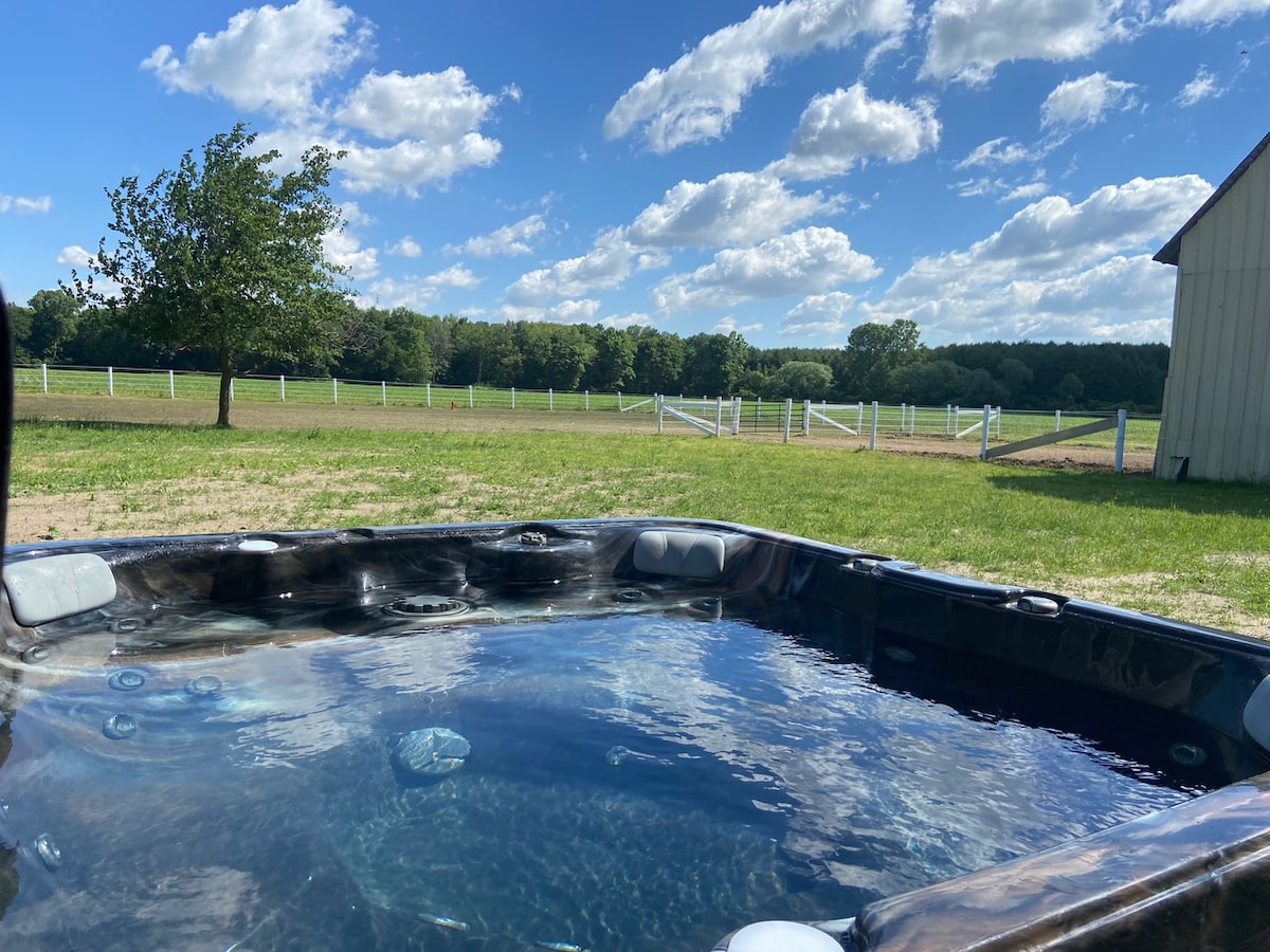 We invite you to enjoy our beautiful country rustic wooden bunkie. Sit outside and enjoy watching the animals or star gaze while having a campfire. Warm up after on the love seat while in front of the fireplace. A/C keeps you comfortable in the summer. This queen sized bed is fantastic to enjoying the free Wifi and Firestick TV. A great spot for a weekend get away. Golf at Tarandowah, Tamarack & Pineknot 10minutes Wave Nordic Spa is 15min Port Stanley/Port Bruce/Port Burwell 30-35min