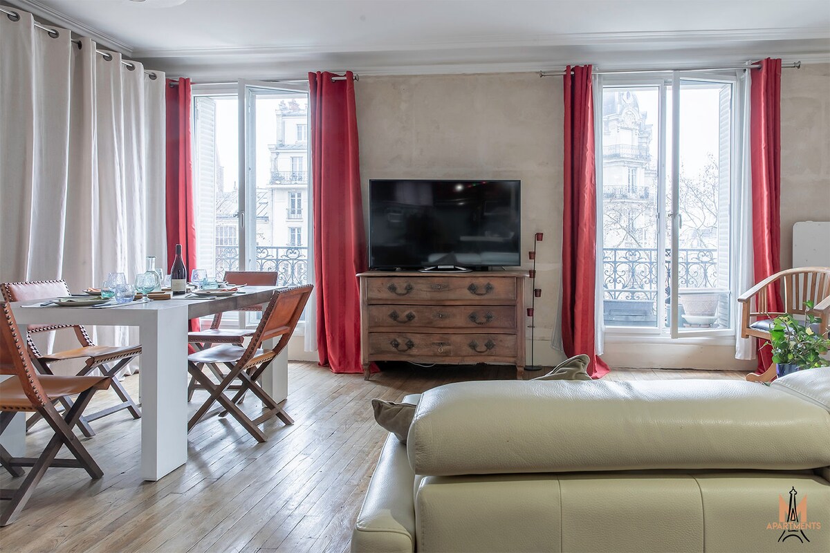 43 մ2 մակերեսով բնակարանը, որը գտնվում է հմայիչ կոնդոմինիումի երրորդ հարկում, գտնվում է իմպրեսիոնիստական թաղամասի սրտում, Մոնմարտրի ստորոտում և Մուլեն Ռուժին մոտ, այս հանգիստ և հարմարավետ բնակարանը, որը նայում է դեպի անտառապատ բակ, թույլ կտա վայելել Շտայնվեյի դաշնամուրը և լիովին վայելել շատ աշխույժ թաղամաս և փարիզյան կյանք (ռեստորաններ, տեռասներ, թատրոններ, կաբարեներ, օպերա, կինոթատրոն...): Դուք, ընդ որում, շրջապատված եք խանութներով, որոնք բաց են մինչև կեսգիշեր (և +):
