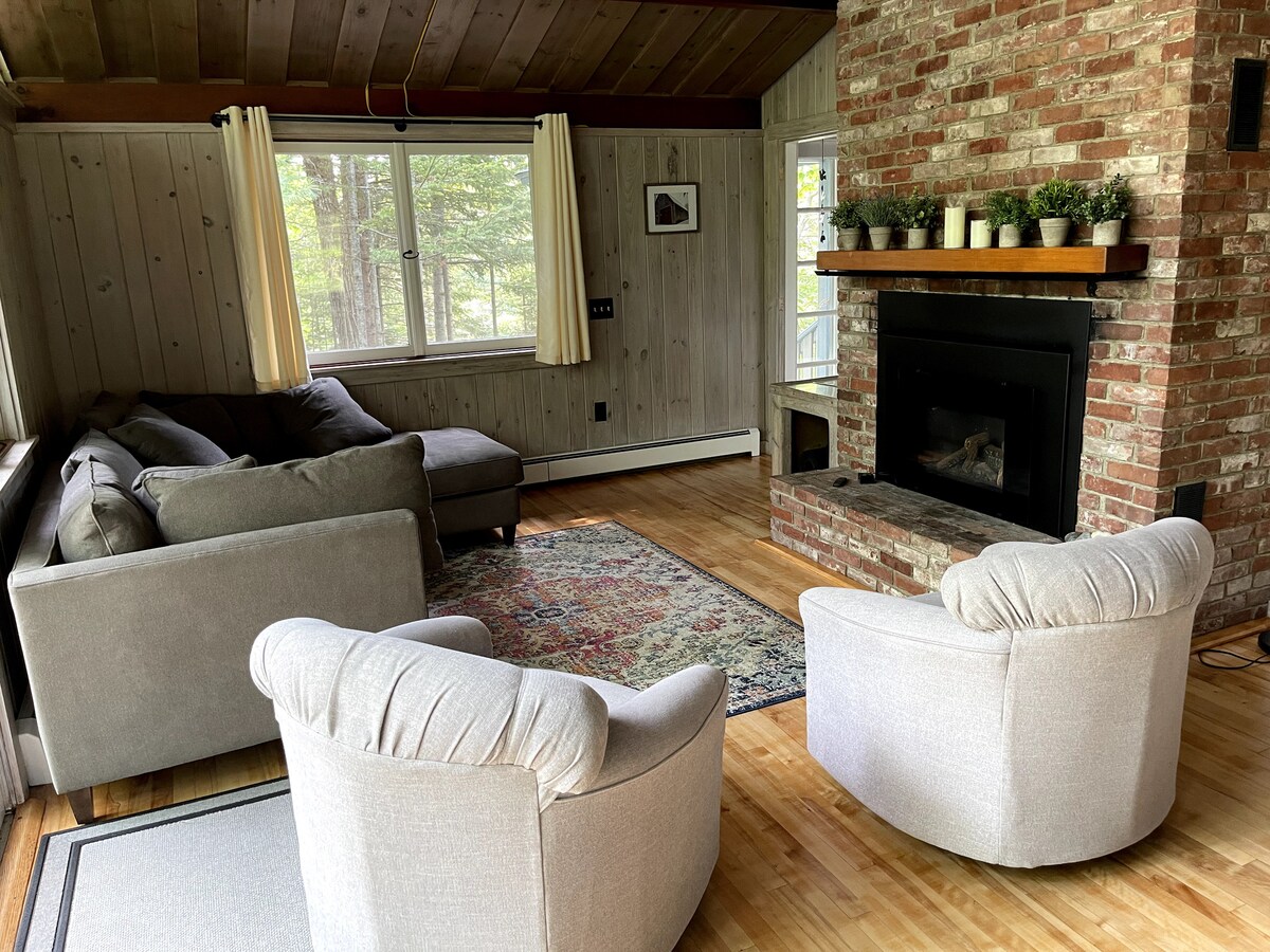 Romantic 2,000-square-foot luxury cottage nestled on twelve acres is a favorite of honeymooners and lovers of modern design * One hour to Acadia National Park & Bar Harbor; fifteen minutes to shopping, hiking, swimming * Stargazing deck * 2 full baths, one with steam shower * Fully equipped kitchen with under-counter fridge/freezer * Two gas fireplaces, one indoors, one on a covered deck * Queen bed with luxurious linens and pillows * WIFI, streaming TV, grill, bar * EV charger