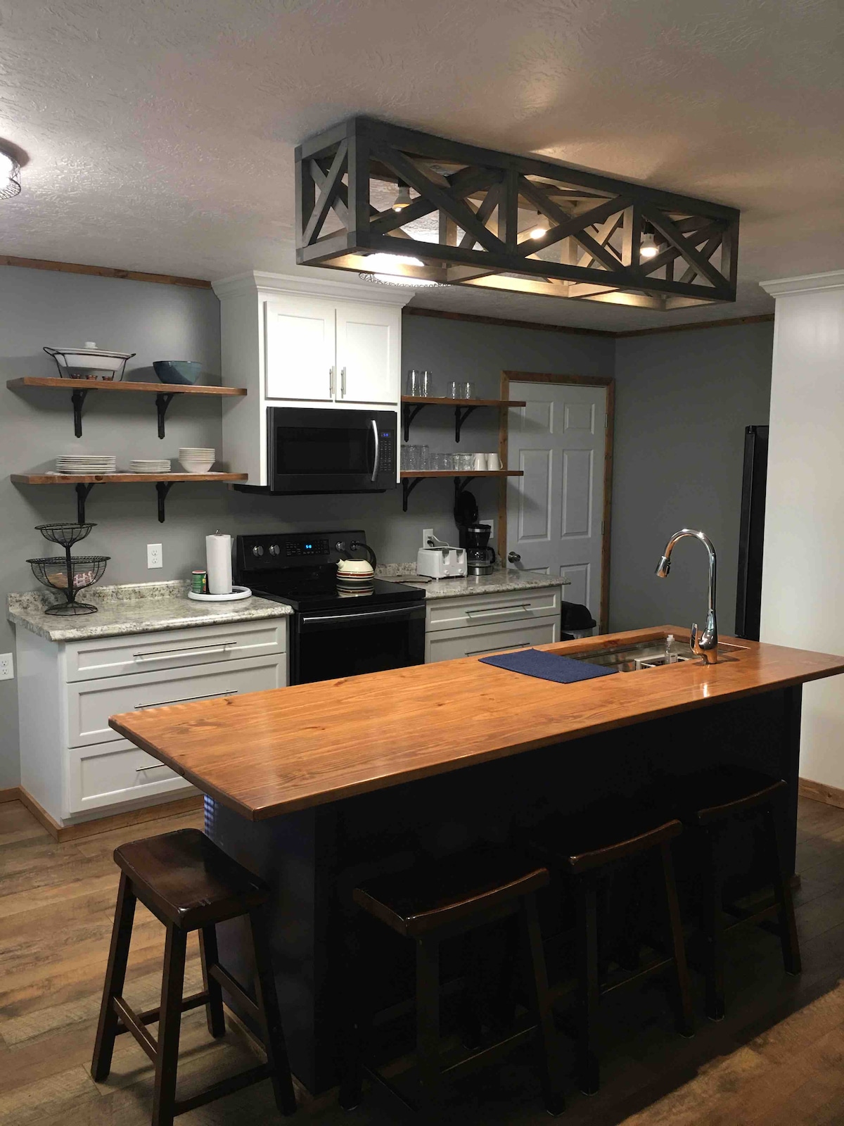 This unique place has a style all its own. Modern, light industrial interior, located on a bluff overlooking the Sylamore Creek, just 500 yards from the White River in Mountain View, AR. You have your own private fire pit, picnic area and charcoal grill. The scenery is awesome and the location is right in the middle of everything. Minutes from the famous folk music square in downtown and just a few miles to Blanchard Springs. You are literally at the edge of the National Forest. You'll LOVE it!