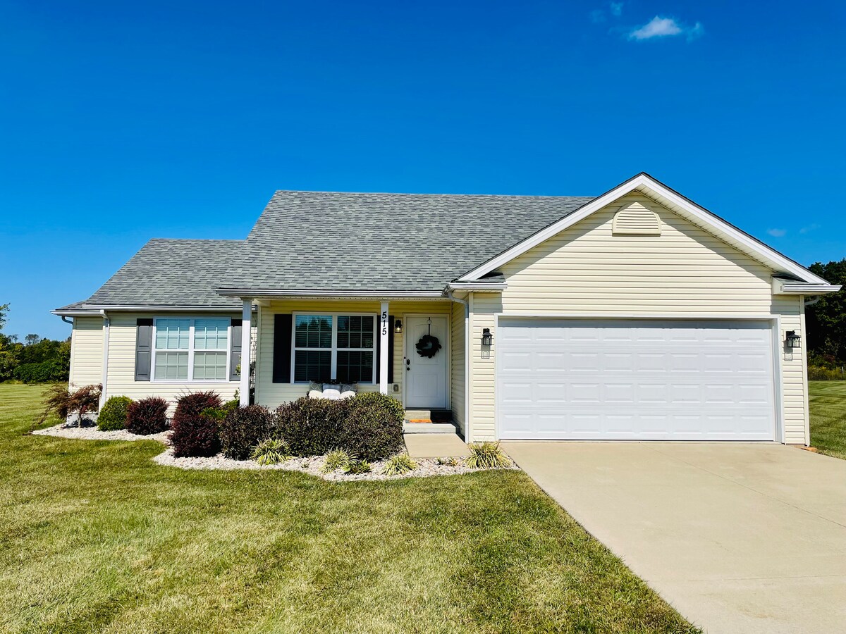 Այս 1,100 SF Farmhouse - ը բաց է և ընդարձակ ՝ շրջապատված բնությամբ, որտեղից բացվում են գեղեցիկ տեսարաններ: Մի զարմացեք, եթե տեսնեք եղջերուներին, վայրի հնդկահավերին, նապաստակներին և լուսատտիկներին ։ Շատ հարմարավետ և հանգիստ ներսից և դրսից: Հրապուրիչ տախտակամած կա կրակի մոտ մեկ բաժակ սուրճ կամ մի բաժակ գինի վայելելու համար ։ Բացի այդ, ներսում կա գազի հարմարավետ բուխարի ։ Ծխել չի թույլատրվում: Գերազանց գերարագ ինտերնետ: Գազից և մթերքներին մնացել է ընդամենը 7 -15 րոպե: Անհրաժեշտության դեպքում ՝ մեկ երկտեղանի մահճակալ և 2 շարժական երկվորյակ ։