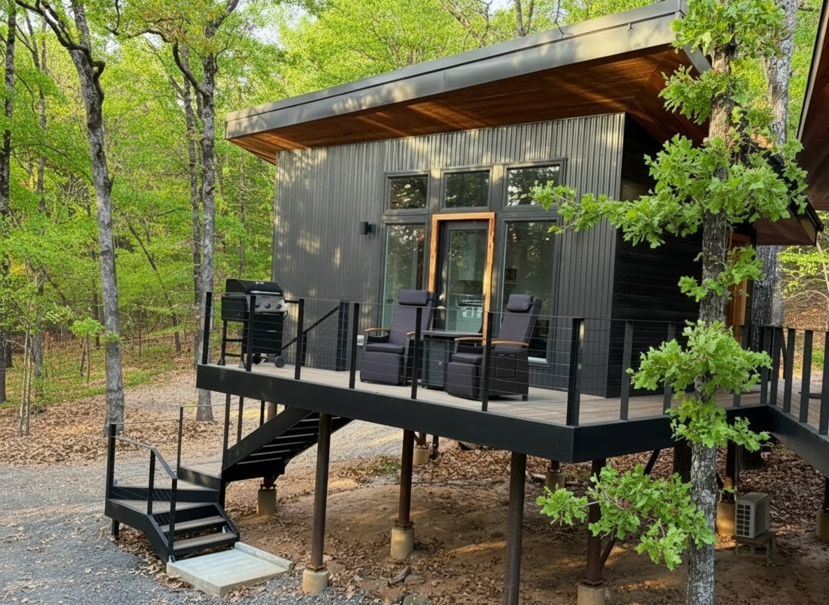 Make some memories at this unique and serene place. Overlooking the beautiful Ozark mountains, enjoy the stunning sunrise, or take a ride on Buckhorn Trails with your side by side or four wheeler. A 25 minute drive to the University of Arkansas if calling the Hogs is more your style! We are a short drive to Lake Fort Smith state park here in Mountainburg for fishing or swimming in the pool. We have a beautiful deck, a comfortable bed, and grill for you to cook your favorite meals.