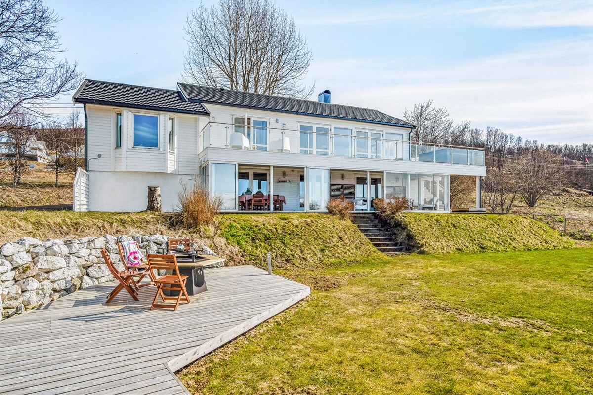 Stort fullt møblert hus ved sjøen med egen strandlinje. Tilgang til vedfyrt badstud mot tillegg i prisen NOK 300,- (1 sekk ved) samt jacuzzi mot tillegg NOK 300,-pr dag. 4 store soverom med dobbelsenger, plass til 8 personer. Mulighet til barneseng ved forespørsel. 15 min med bil inn til Tromsø sentrum. Nært til alpinannlegg, skiløyper og butikk. Fantastisk uteområde med midnattsol på sommeren og nordlys på vinteren. Plass til flere biler i innkjørselen. Godt internett. Kan ta 3 personer til