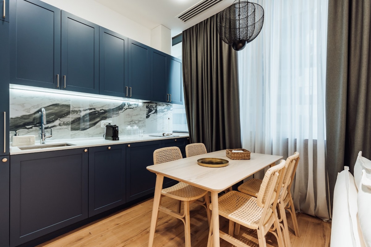 Վայելեք նորաոճ փորձառություն այս կենտրոնացված վայրում ։ Ժամանակակից և շքեղ դիզայնով ամբողջովին նոր, մեկ սենյականոց բնակարանն ապահովում է Ձեր հարմարավետ հանգիստը: Համարվում է, որ լավագույն տարբերակն է միայնակ ճանապարհորդների, զույգերի և այլոց համար, ովքեր շքեղ բնակարան են փնտրում Թբիլիսիի ամենահեղինակավոր բնակելի համալիրում :