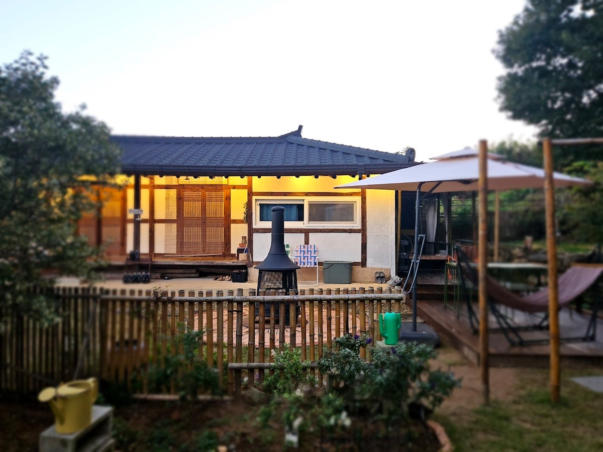 Այժմ ։ Այստեղ ։ Տարածք ձեզ համար, ով պարզապես ուզում է հանգստանալ գեղեցիկ վայրում ։ Եթե գալիս եք Ջեոնջու, հանգիստն այստեղ է ։ Հանոկ գյուղից 30 րոպե հեռավորության վրա ։ Վայելեք լիարժեք հանգիստ՝ Զալցբուրգը հիշեցնող բնությամբ շրջապատված նորաձև կացարանում։ Օրական միայն մեկ թիմ կարող է վայելել գեղեցիկ տեսարանն ու պարտեզները։ Ձեր հետևում ՝ Յուբոնգսան լեռան հետևում, և ապագայում գեղեցիկ պարտեզի տեսարան է բացվում երկու լճակներով ։ Wibongsa - ն, Yubongsanseong - ը և Wibong Falls - ը ոտքով 10 րոպեում են, և մոտակայքում կան վայելելու և տեսնելու շատ վայրեր, այդ թվում ՝ ֆանտաստիկ շարժումներ: Հասանելի են բացօթյա մանղալներ ։ Ֆósnaðar- og grillkostnaður er 20.000 KRW. (Եթե ձմռանը դրսի ջուրը սառած է, և դժվար է մաքրել գրիլը, ապա խորոված պատրաստելը նույնպես կարող է դժվար լինել։) Եթե պարզապես վառելափայտ եք բերում, կարող եք նաև վայելել կրակադաշտը ։ Միս կամ ձուկ (այդ թվում ՝ ծովախեցգետին և այլն) խորովել չի կարելի ներսում ։ Հնարավոր է Տանգյու ։ Շնորհակալություն համագործակցության համար