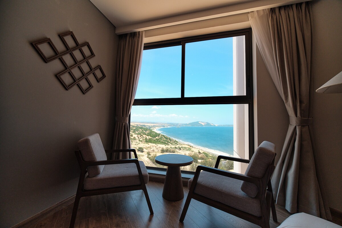 Ոգեշնչվելով տիբեթյան բուդդայական ճարտարապետությամբ ՝ բնակարանի ինտերիերը տաք կարմիր է ՝ համակցված անիվի և քամու մեջ թռչող Լունգտայի դրոշի հետ... Ինտերիերի ներդաշնակությունը ստեղծում է բնակարան, որը և ՛ առեղծվածային է, և ՛ լի է ազատ և առատաձեռն հույզերով: Տեղափոխվելու կարիք չկա, կարող եք արևածագին հետևել հենց մահճակալի մոտ ։ Կարող եք նաև մի բաժակ թեյ խմել պատուհանի մոտ և հիանալ Վիետնամի ամենագեղեցիկ ափամերձ ավազե ճանապարհով, դիտել ընդարձակ կապույտ ծովը, սպիտակ ավազը ։