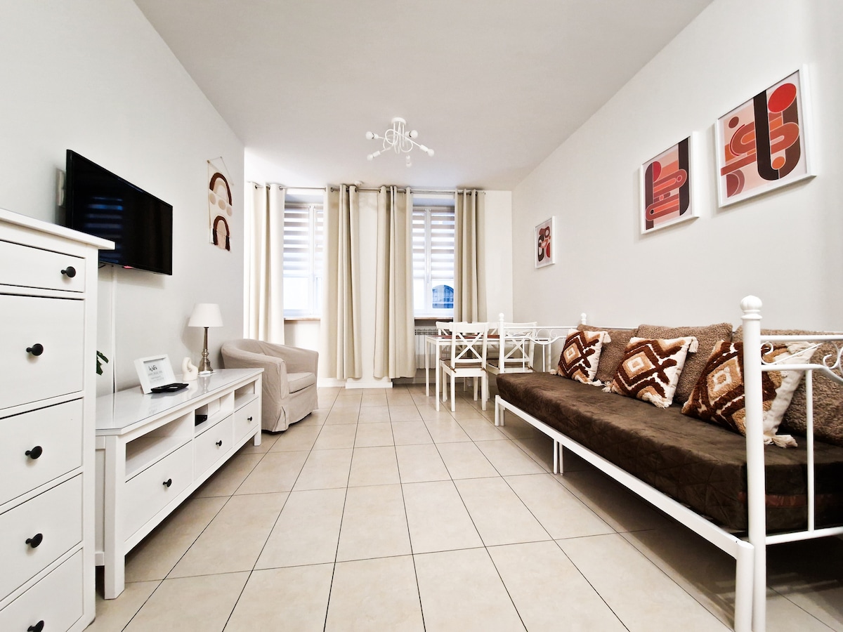 Հին քաղաքի գեղեցիկ բնակարան, որը գտնվում է պատմական շենքում ՝ լայն պատուհաններով, բարձր առաստաղներով և փայտե հատակով ։ Ներսում կգտնեք այն ամենը, ինչ անհրաժեշտ է հանգստյան օրերի կարճատև ուղևորության կամ ավելի երկար այցի համար. - 2 մեծ երկտեղանի մահճակալ - թարմ սրբիչներ և անկողնային սպիտակեղեն - վարսահարդարիչ - լվացքի մեքենա - ցնցուղի գել, շամպուն և ատամի մածուկ - արդուկ և արդուկի սեղան - թեյ, սուրճ, աղ, պղպեղ և այլն: - արագ և հուսալի Wi - Fi ՝ առանց տվյալների սահմանափակման փոխանցման - հասարակական տրանսպորտ և մետրոյի կայարան ՝ քայլելու հեռավորության վրա